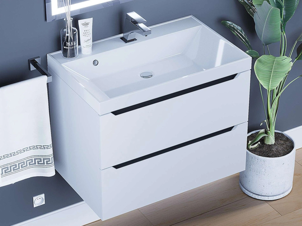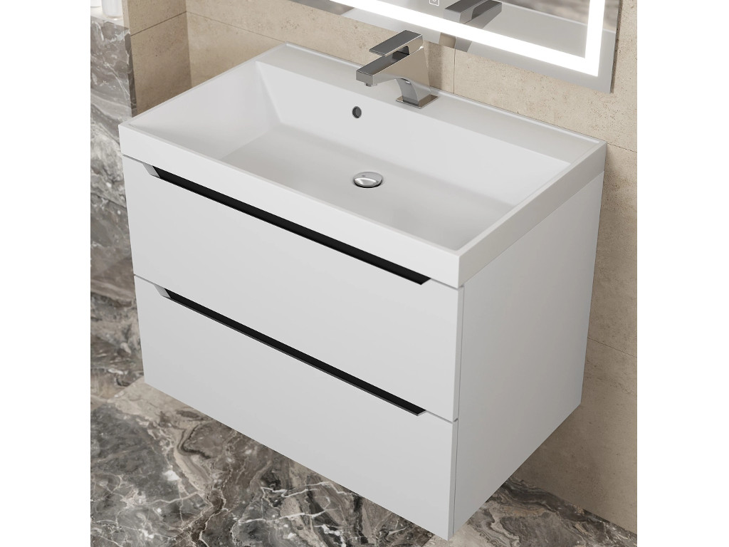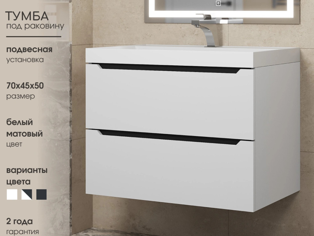 - Тумба с раковиной Uperwood Tanos матовая белая/графит 70 см