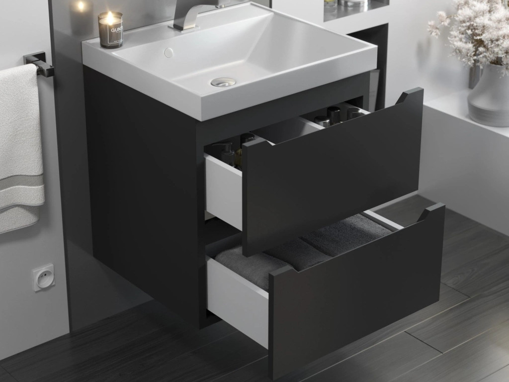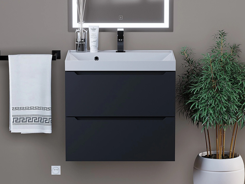 - Тумба с раковиной Uperwood Tanos матовая черная 60 см