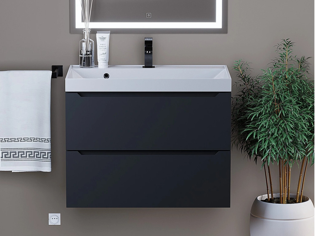- Тумба с раковиной Uperwood Tanos матовая черная 70 см