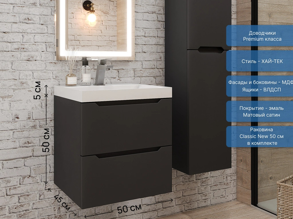 Тумба с раковиной Uperwood Tanos NEW 50 см черная