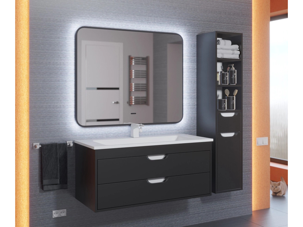 - Зеркало Uperwood Modul черное холодная подсветка 100х80 см
