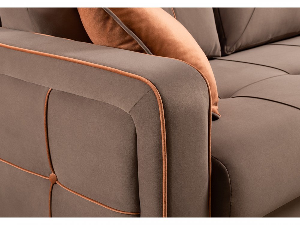 - По торцам подлокотников и думках контрастный декоративный кант.