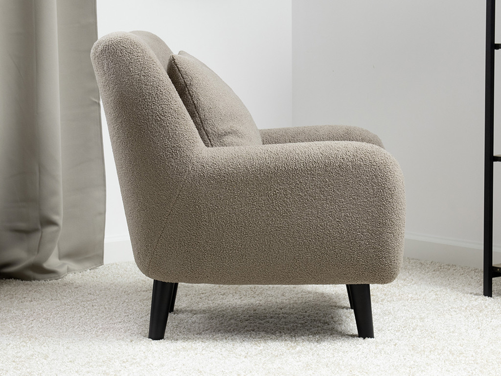 Декор: Ткань букле делает кресло особенно уютным и мягким. Приспинная подушка в цвете кресла
