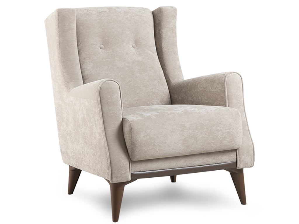Декор: Декоративный кант из основной ткани по переднему торцу подлокотника; Утяжка спинки на 2 декоративные пуговицы из основного материала; Декоративный элемент царги из материала-компаньона.