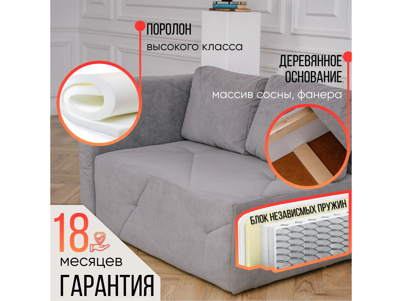 Наполнение: ППУ, независимый пружинный блок