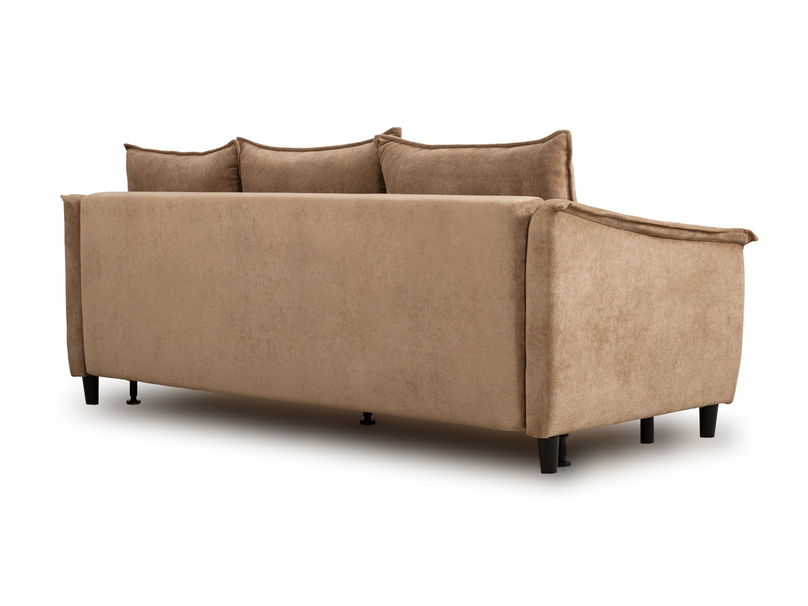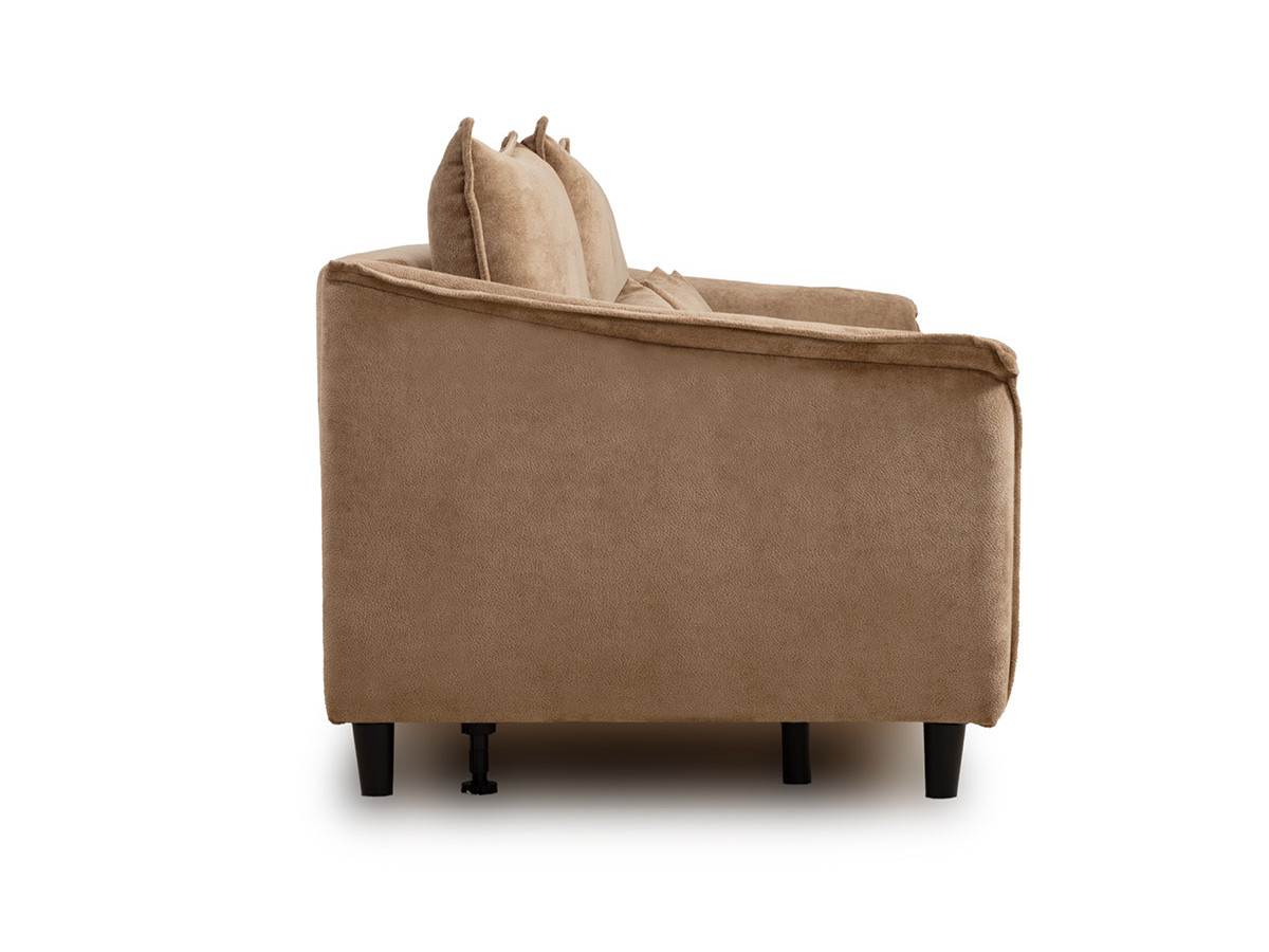 Спинка с тремя приспинными подушками. Две подушки трапецивидной формы, центральная квадратной формы на молнии, по трем сторонам которых проложена отделочная строчка на 1,2 см. По контуру боковин проложен декоративный кант на 1,2 см из основной ткани. Кант проходит по центру передней части боковины, а по внутренней верхней части сборка.