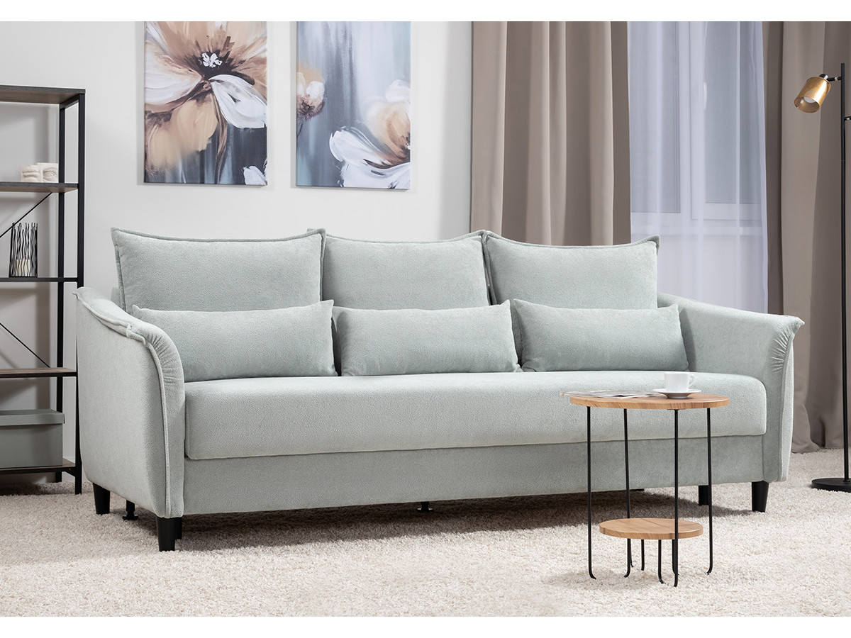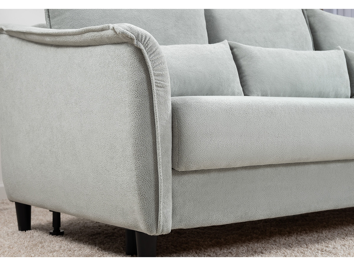 Спинка с тремя приспинными подушками. Две подушки трапецивидной формы, центральная квадратной формы на молнии, по трем сторонам которых проложена отделочная строчка на 1,2 см. По контуру боковин проложен декоративный кант на 1,2 см из основной ткани. Кант проходит по центру передней части боковины, а по внутренней верхней части сборка.