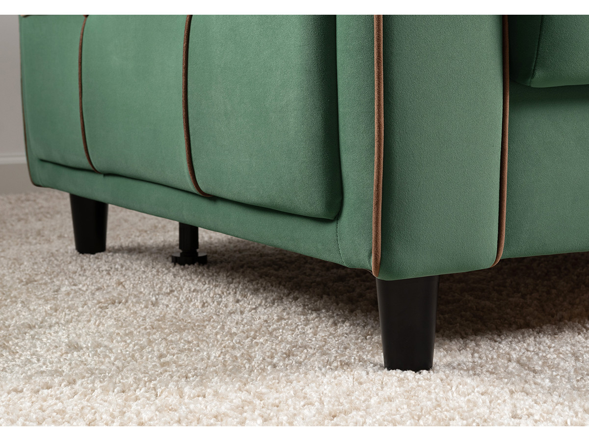- По торцам подлокотников и думках контрастный декоративный кант.