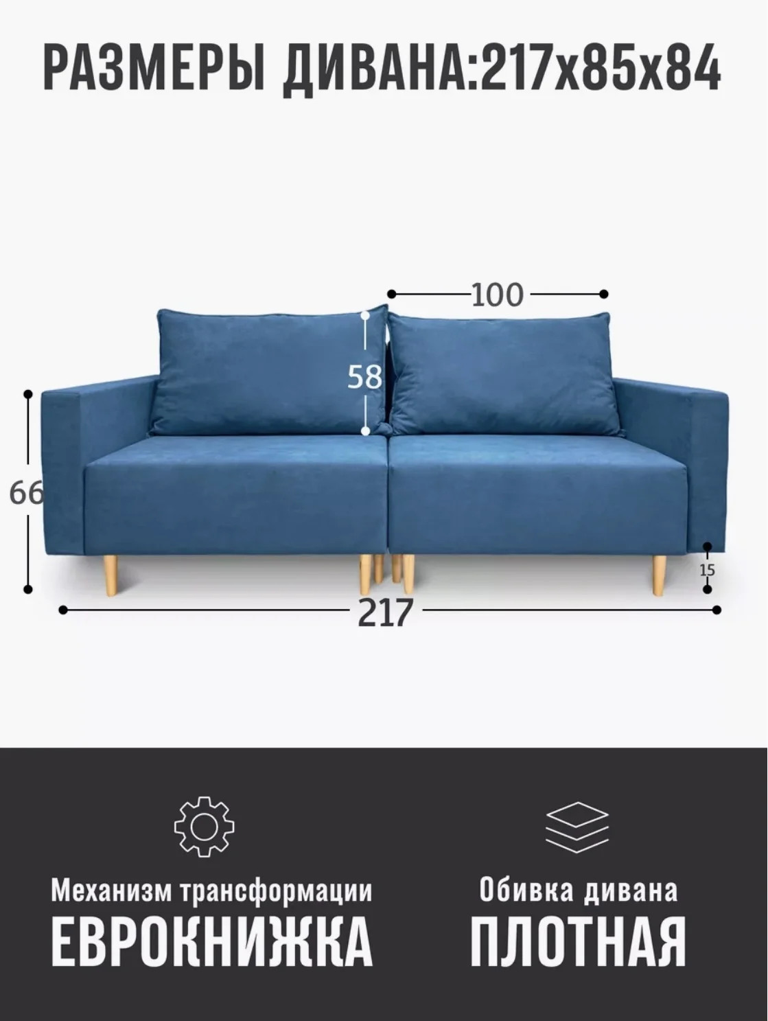 Размер ШxГxВ: 2170x850x840 мм