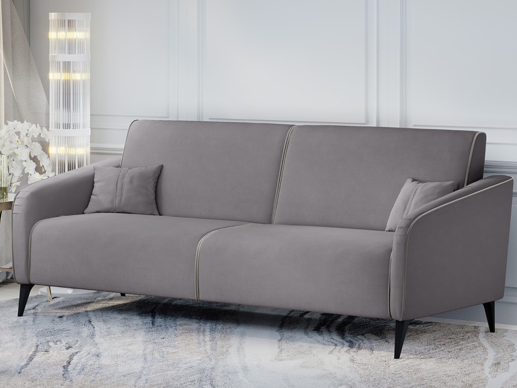 Декор: Спинка и сиденье разделяются пополам двойным кантом по центру и одинарным по краям сидения, для придания одной единой формы. Подлокотники с изгибом на лицевой стороне и мягкими закругленным углом со складками, с выраженным контрастным ровным кантом по внешнему контуру изделия и изогнутой линией канта.