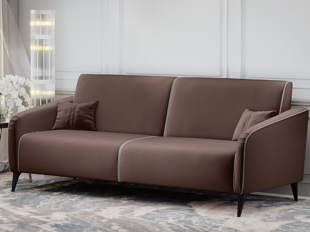 Декор: Спинка и сиденье разделяются пополам двойным кантом по центру и одинарным по краям сидения, для придания одной единой формы. Подлокотники с изгибом на лицевой стороне и мягкими закругленным углом со складками, с выраженным контрастным ровным кантом по внешнему контуру изделия и изогнутой линией канта.