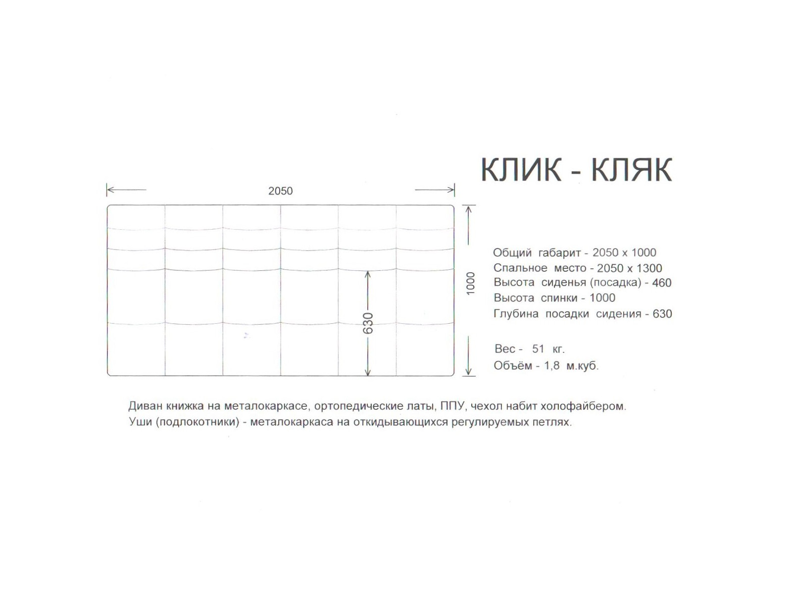 Спальное место: 130х205 см
