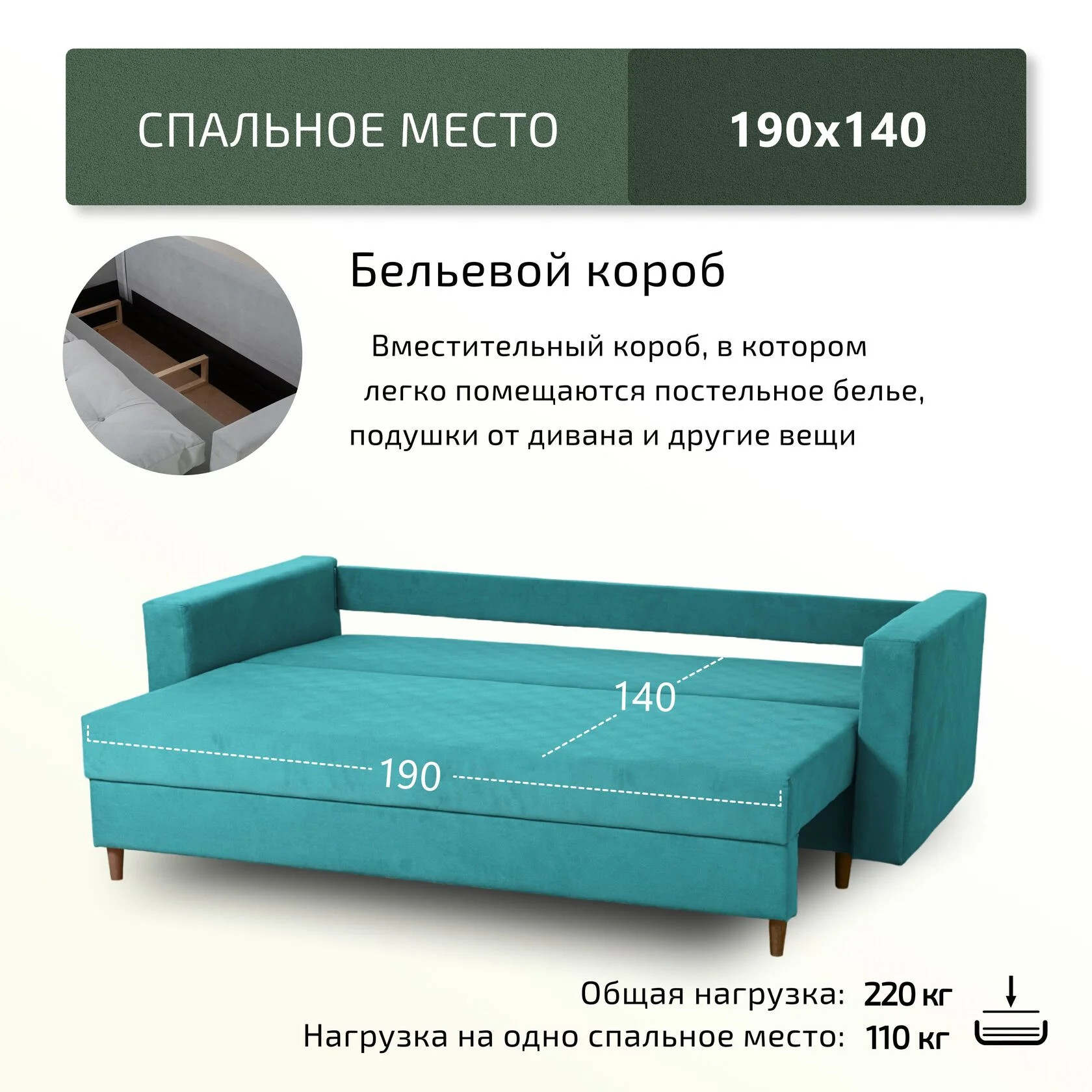 Спальное место, мм: 1400х1900 мм