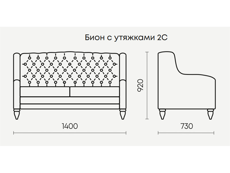 Офисный диван Бион с утяжками (пуговицы) 2Д