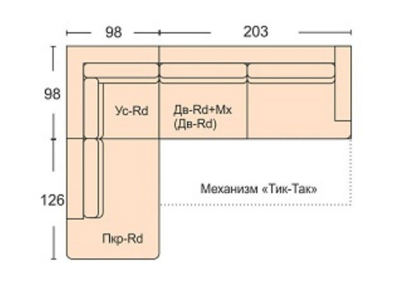 бельевой ящик под основным сидением  , габариты по глубине 98, по ширине 301, по оттоманке 224  , размер спального 125*261, локотники 17 см