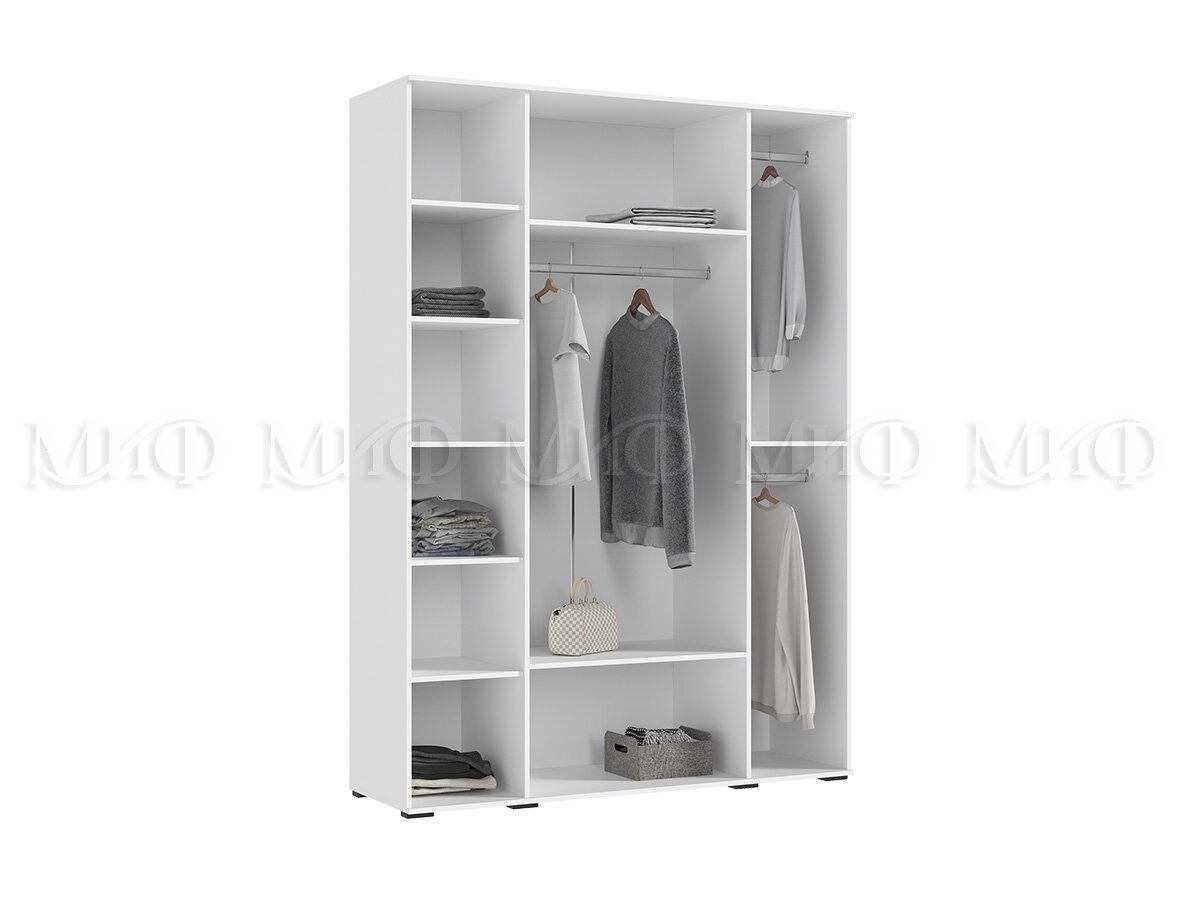 - Шкаф 3-х створчатый Норд 1200 с зеркалом белый глянец
