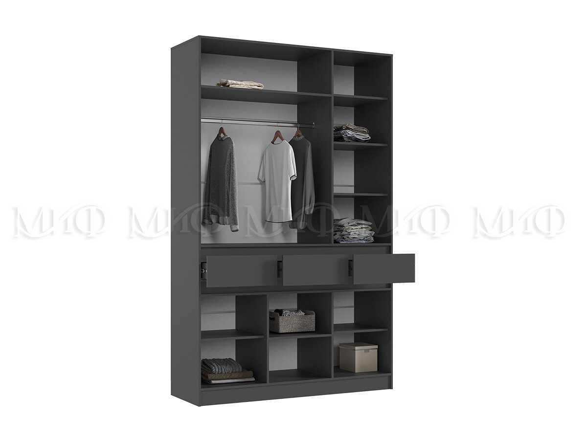 - Шкаф 3-х створчатый Роджина Графит/Дуб Крафт Белый
