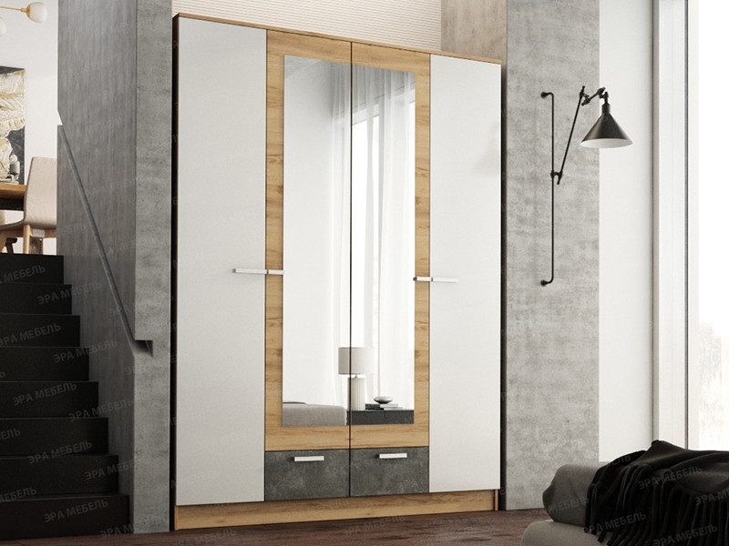 - Шкаф Адель 1600 Дуб Вотан-Белый гладкий