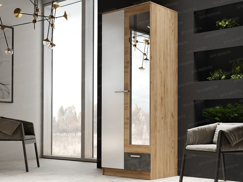 - Шкаф Адель 800 Дуб Вотан-Белый гладкий