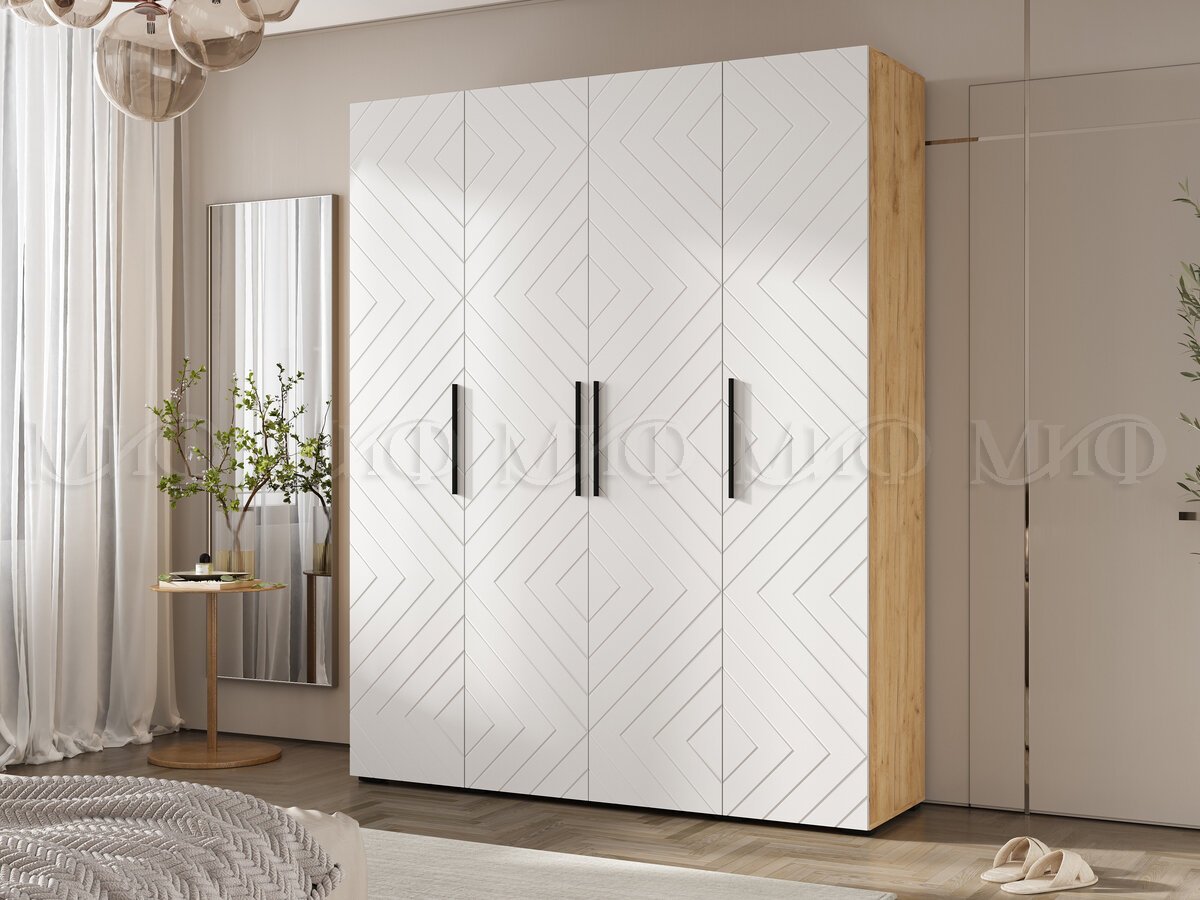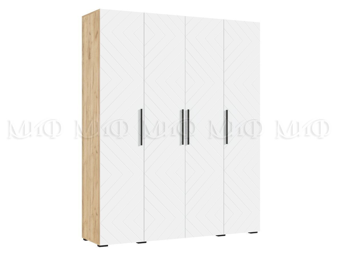 - Шкаф четырехстворчатый (1800) Флэш Браш Вайт, Дуб Крафт