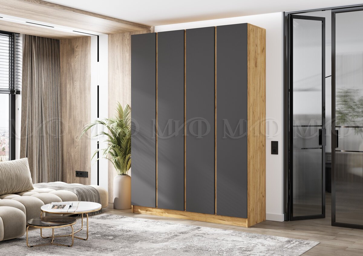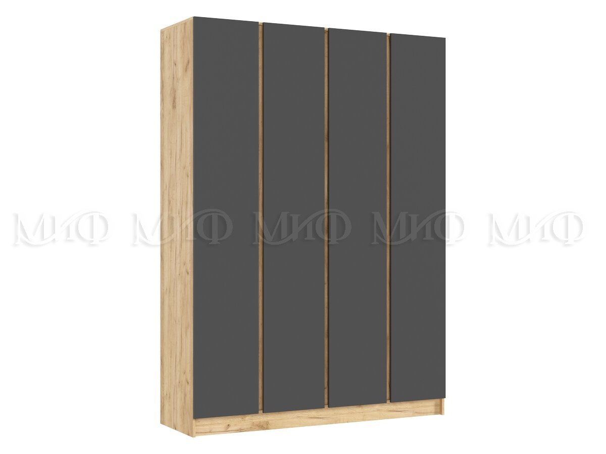 - Шкаф четырехстворчатый Келвин (1600) Графит, Дуб Крафт-вставка дуб крафт