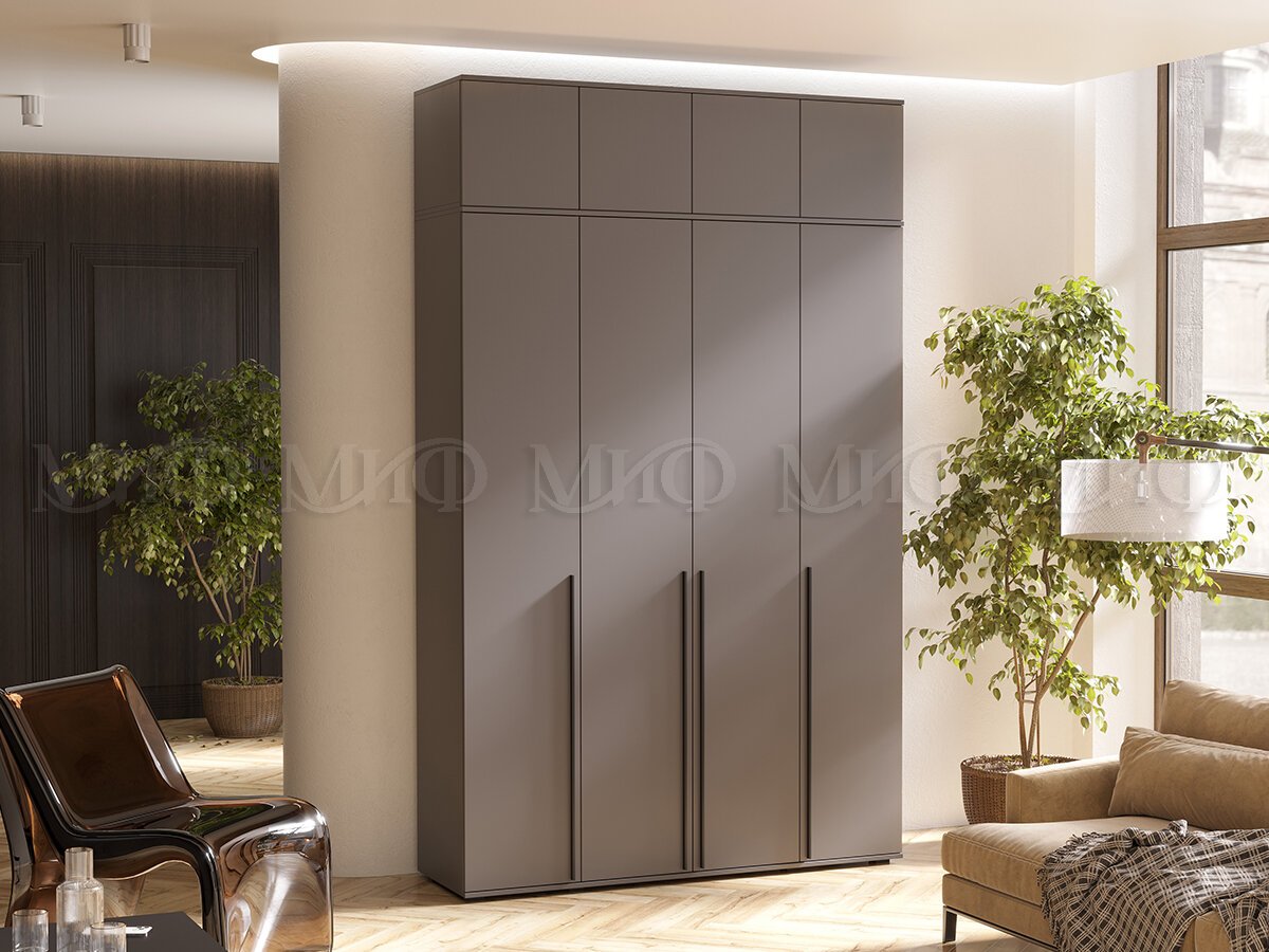 - Шкаф четырехстворчатый Норд 1600 с антресолью графит МГ