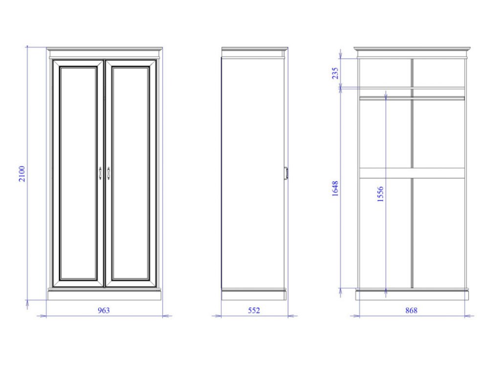 Шкаф для одежды Сиена дополнен декоративным карнизом, укомплектован полкой и штангой для вешалок.