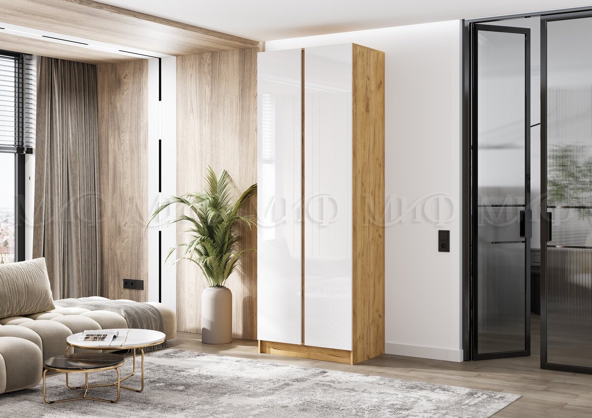 Шкаф двухстворчатый Келвин (800) Белый Глянец, Дуб Крафт-вставка дуб крафт