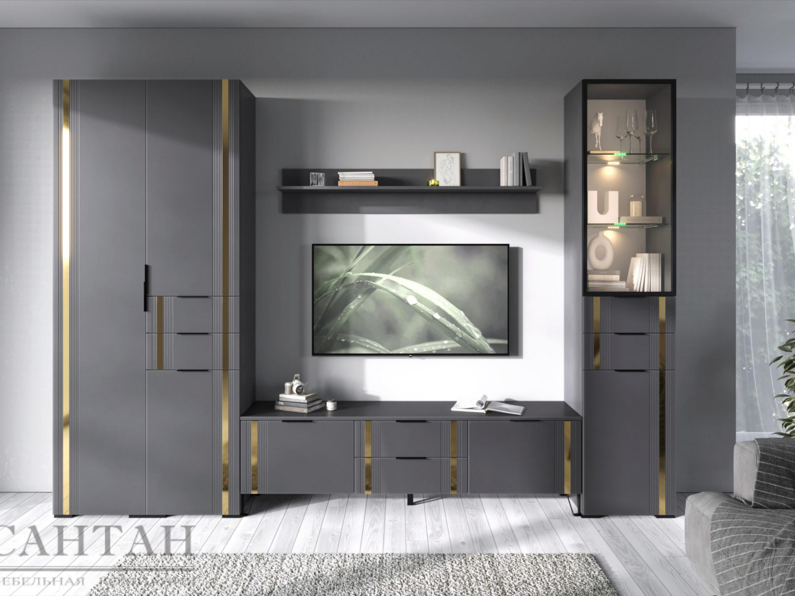 - Фасады из МДФ с оригинальной фрезеровкой покрыты суперматовой пленкой с эффектом Soft Touch в цветах Графит и Milk.