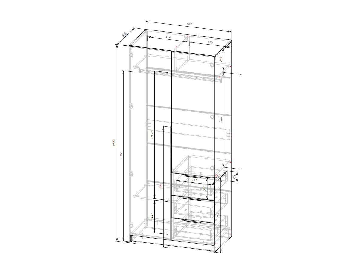 Габариты: Д.902 х В.2075 х Г.510 мм