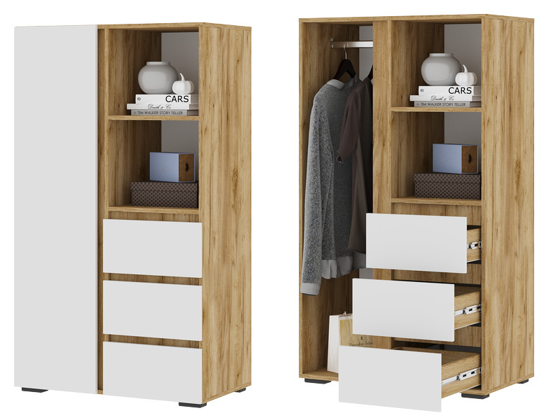 Шкаф ШК 03 Хелен Дуб Крафт золотой/Белый шагрень
