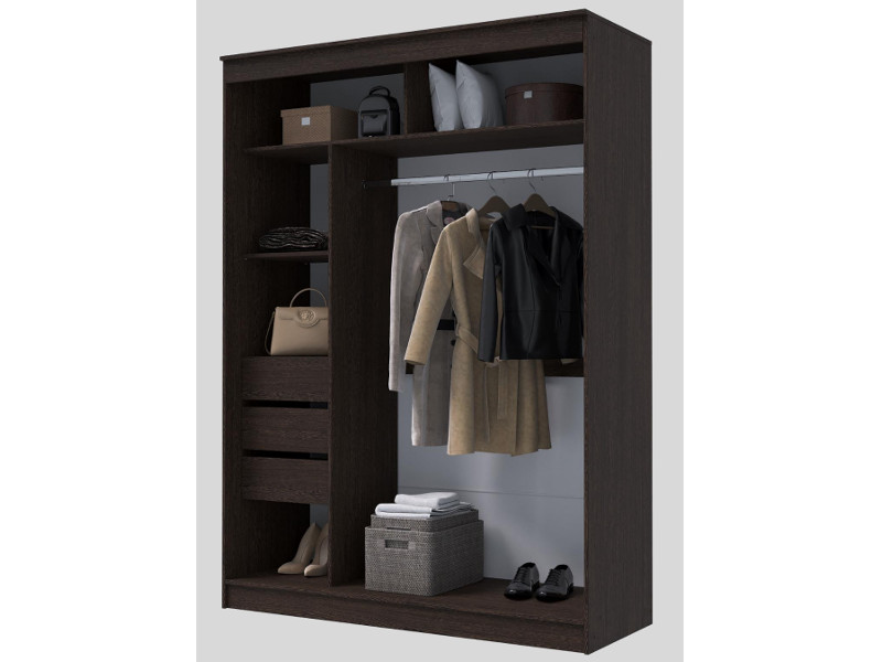 - Шкаф-купе Гранд-1 1600 Дуб Венге-двери Зеркало-Лакобель черный