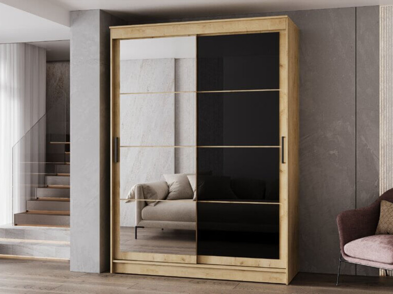 - Шкаф-купе Гранд-1 1600 Дуб Вотан-двери Зеркало-Лакобель черный
