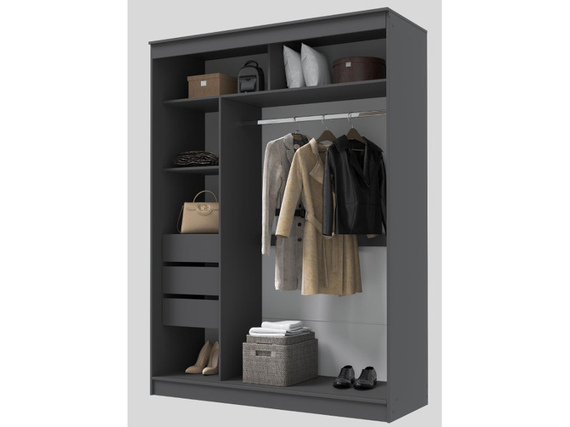 - Шкаф-купе Гранд-1 1600 Графит-двери Зеркало-Лакобель черный