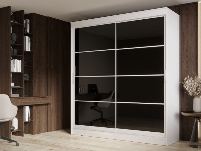 Шкаф-купе Гранд-1 2000 Белый гладкий-двери Лакобель черный