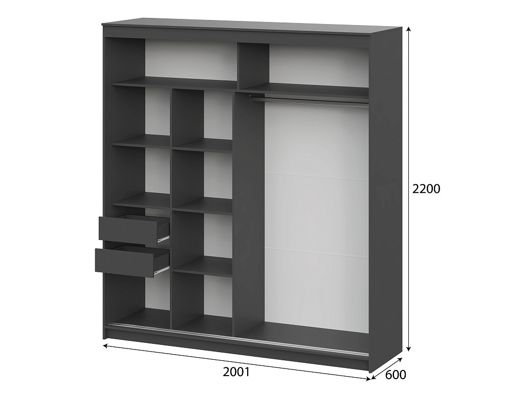 Шкаф-купе ШКП-3 2.0м Серия 2 МАКС Графит серый
