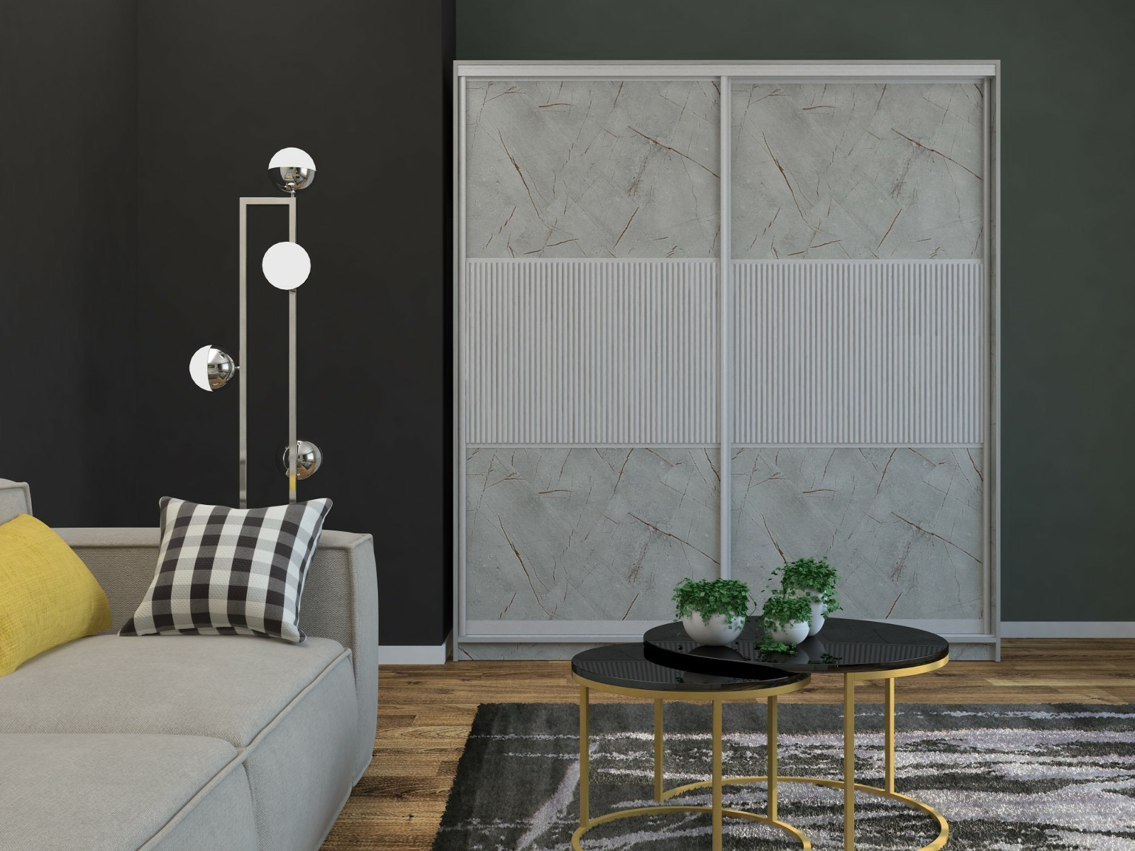 Шкаф-купе Ксения 1400 широкая рельефная вставка МДФ Каспий светлый