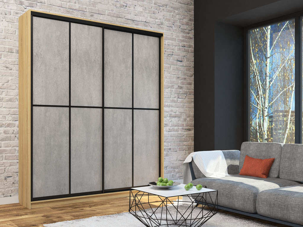 Шкаф-купе Лофт Шк20-60 2000 глубина 600 фасад МДФ бетон +