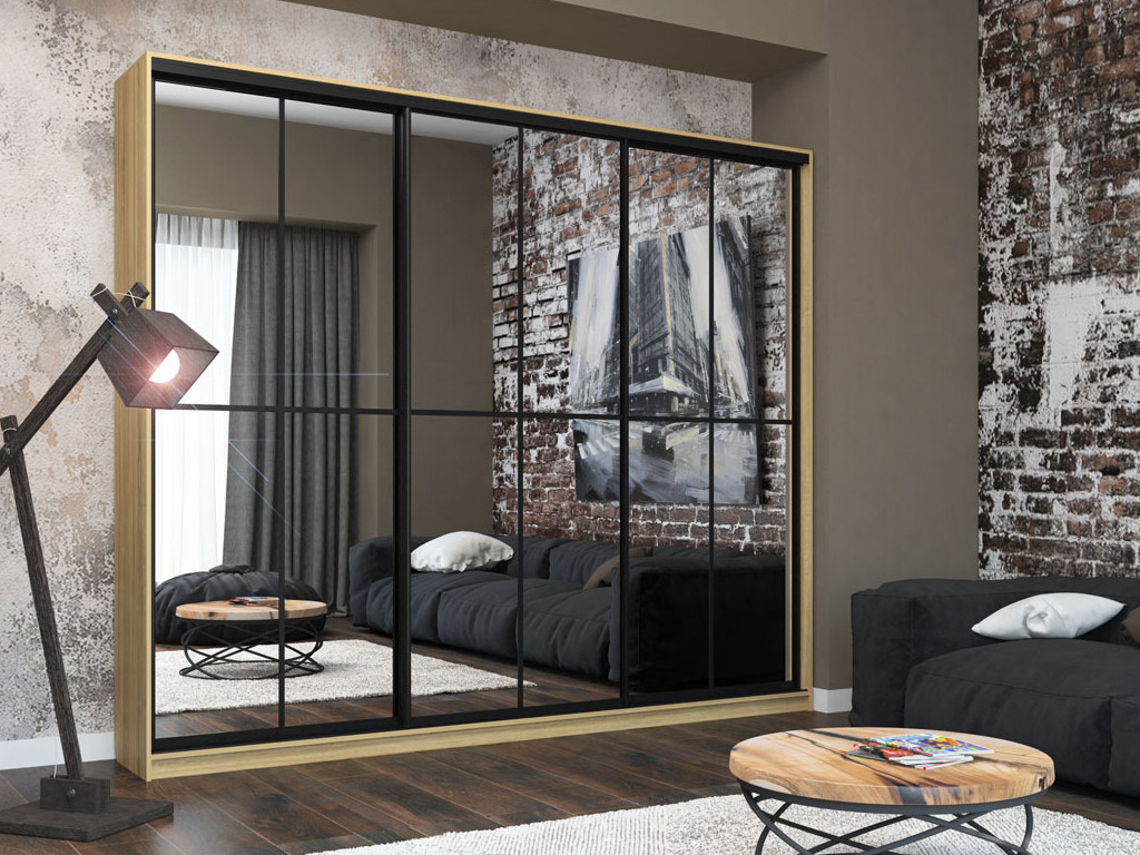 Шкаф-купе Лофт Шк30-60 3000 3 двери глубина 600 фасад зеркало +