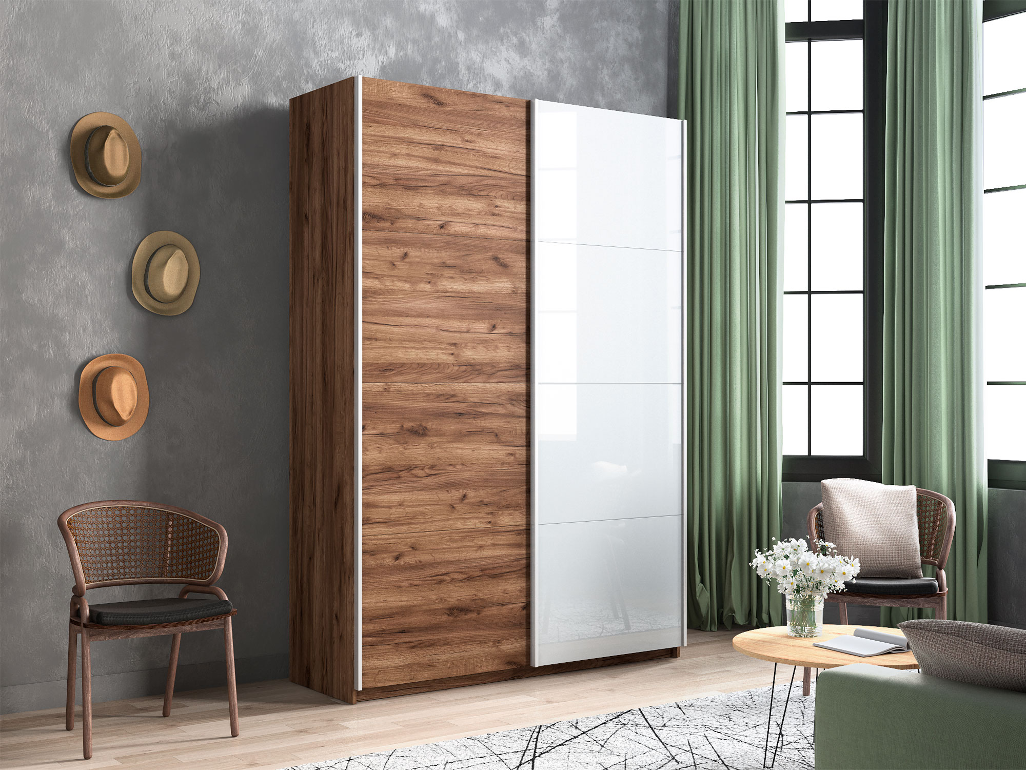 - Усиленная навесная система дверей помогает ходовому профилю выдерживать высокие нагрузки, а также сохраняет полезную площадь внутри шкафа, благодаря установке снаружи корпуса