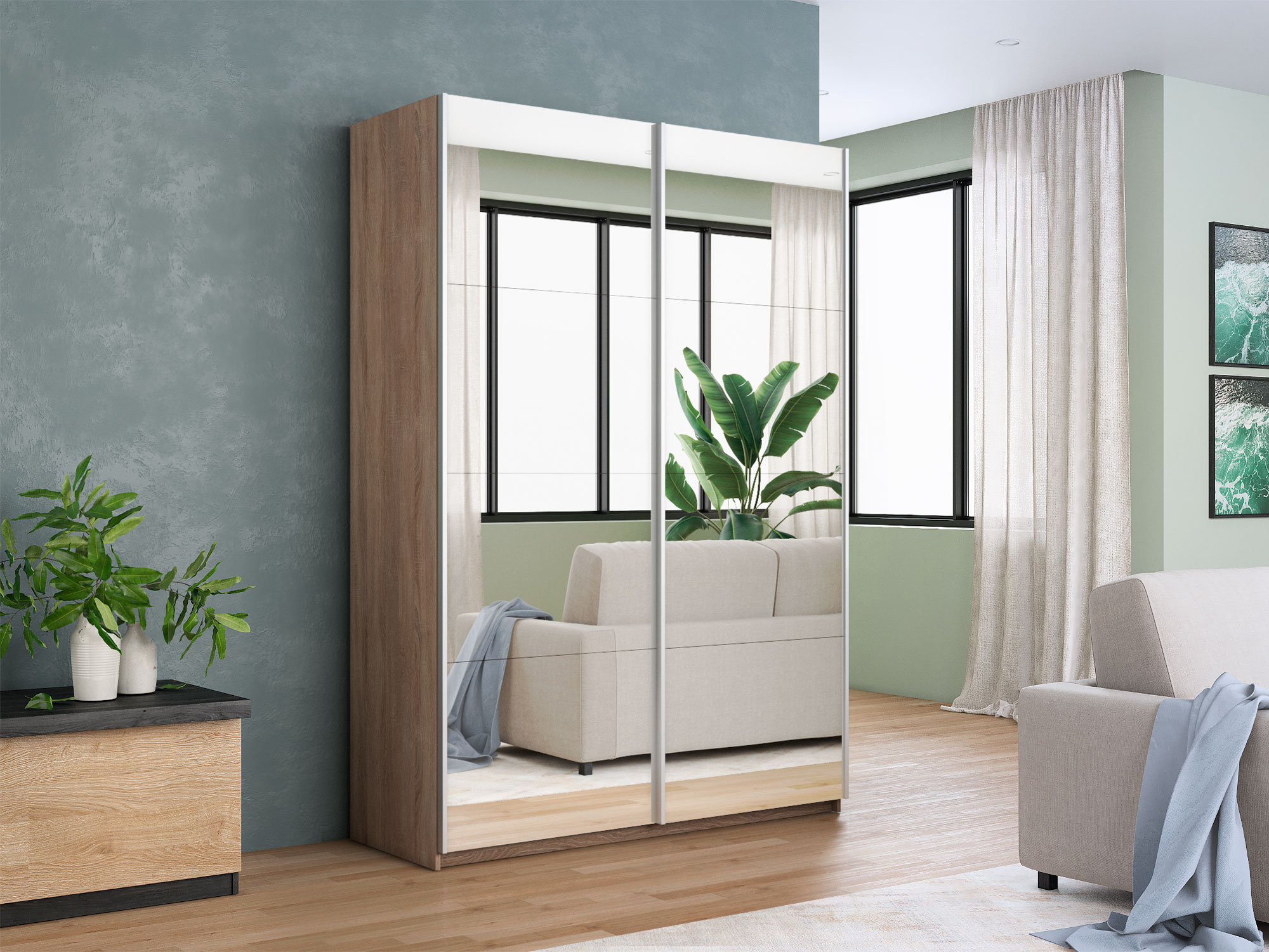 - Шкаф-купе Прайм 2-х дверный 1400 два зеркала Сонома