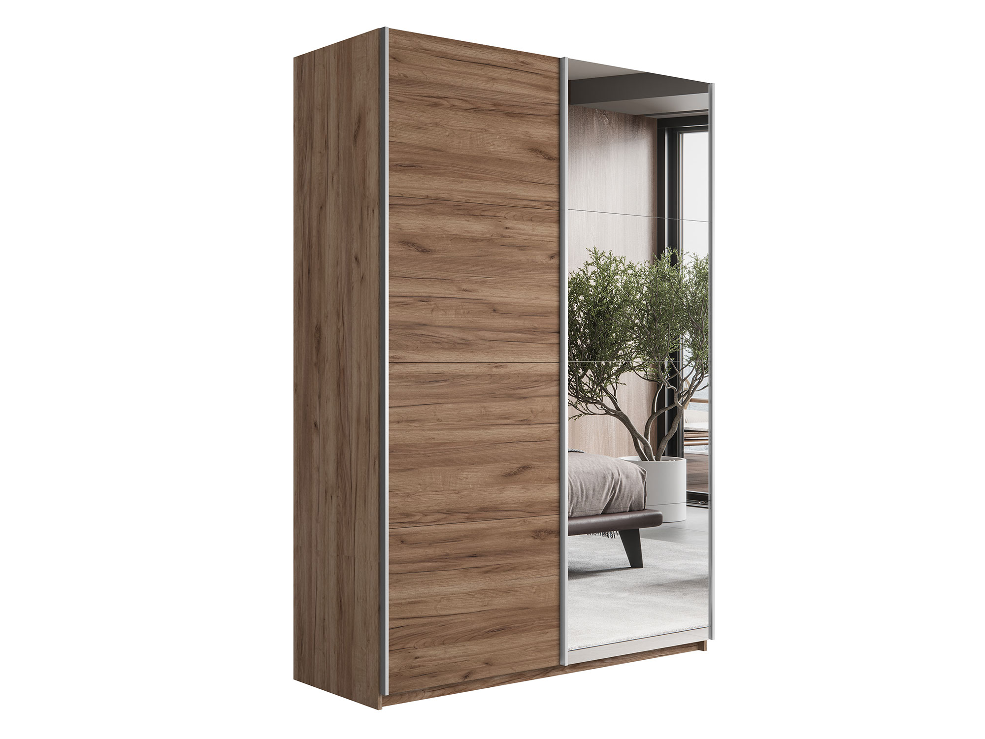 - Шкаф-купе Прайм 2-х дверный 1400 Зеркало/ДСП Крафт табачный