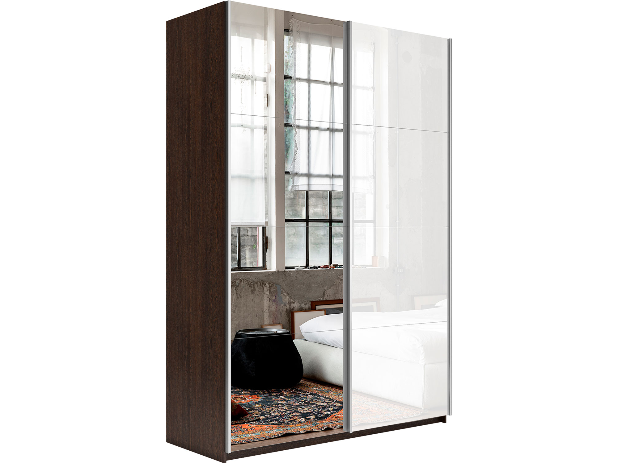 - Шкаф-купе Прайм 2-х дверный 1400 Зеркало/Стекло Белое Венге