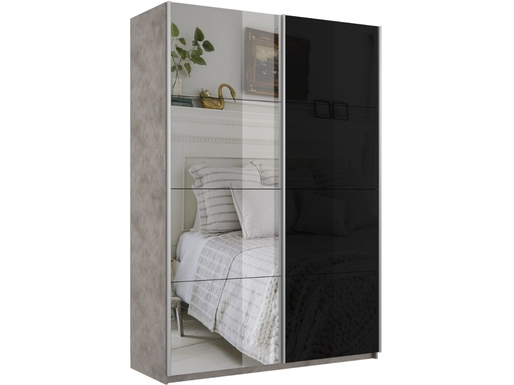 - Шкаф-купе Прайм 2-х дверный 1600 Зеркало/Стекло Черное Бетон