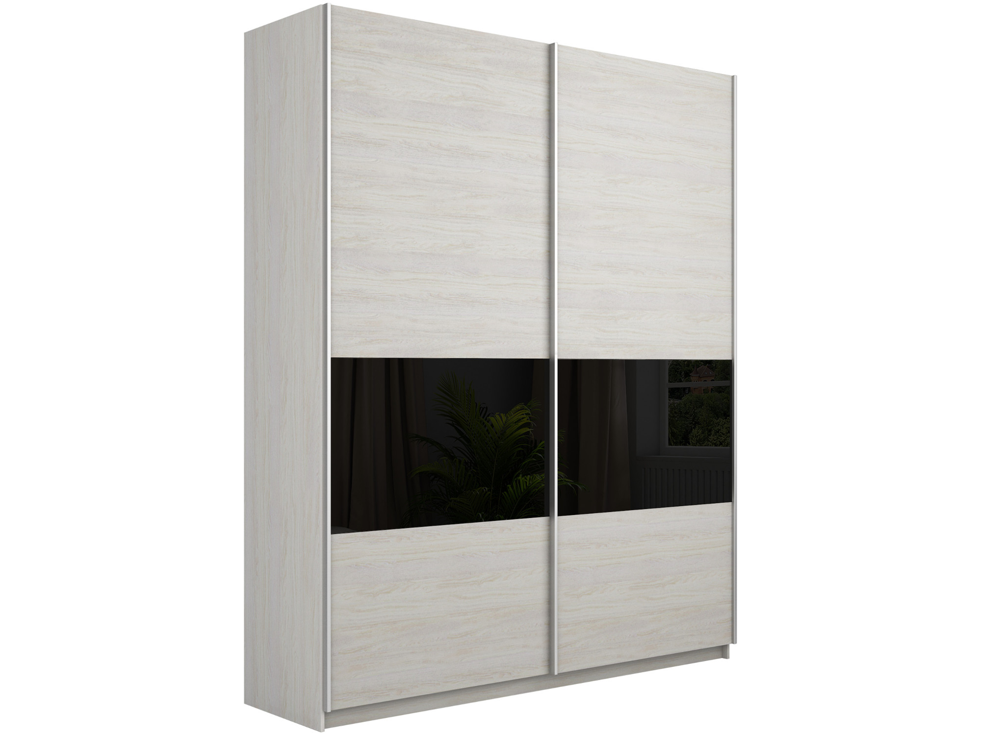 Шкаф-купе Прайм 2-х дверный ДСП/вставки Стекло Черное Ясень Анкор Светлый