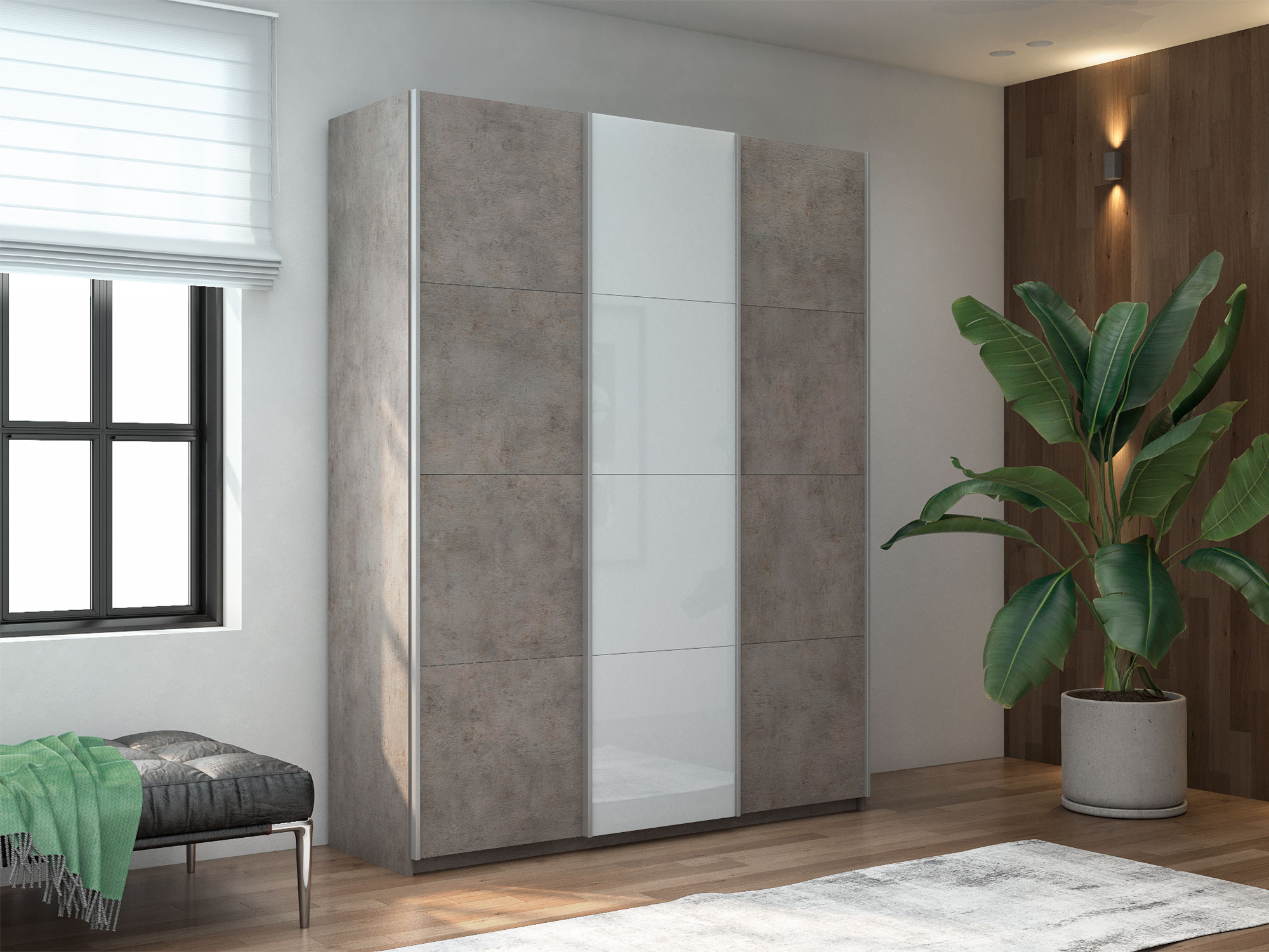 - Шкаф-купе Прайм 3-х дверный 1800 ДСП/Стекло Белое/ДСП Бетон