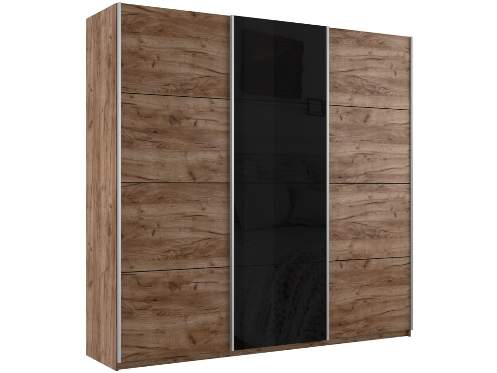 - Шкаф-купе Прайм 3-х дверный 1800 ДСП/Стекло Черное/ДСП Крафт табачный