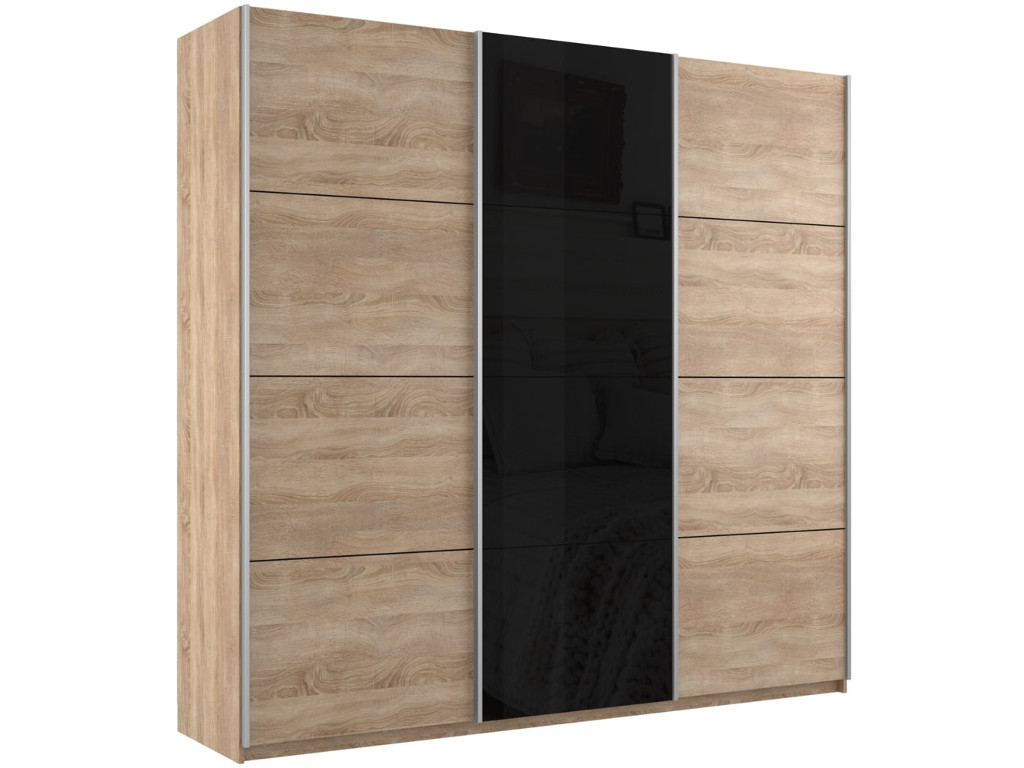 - Шкаф-купе Прайм 3-х дверный 1800 ДСП/Стекло Черное/ДСП Сонома