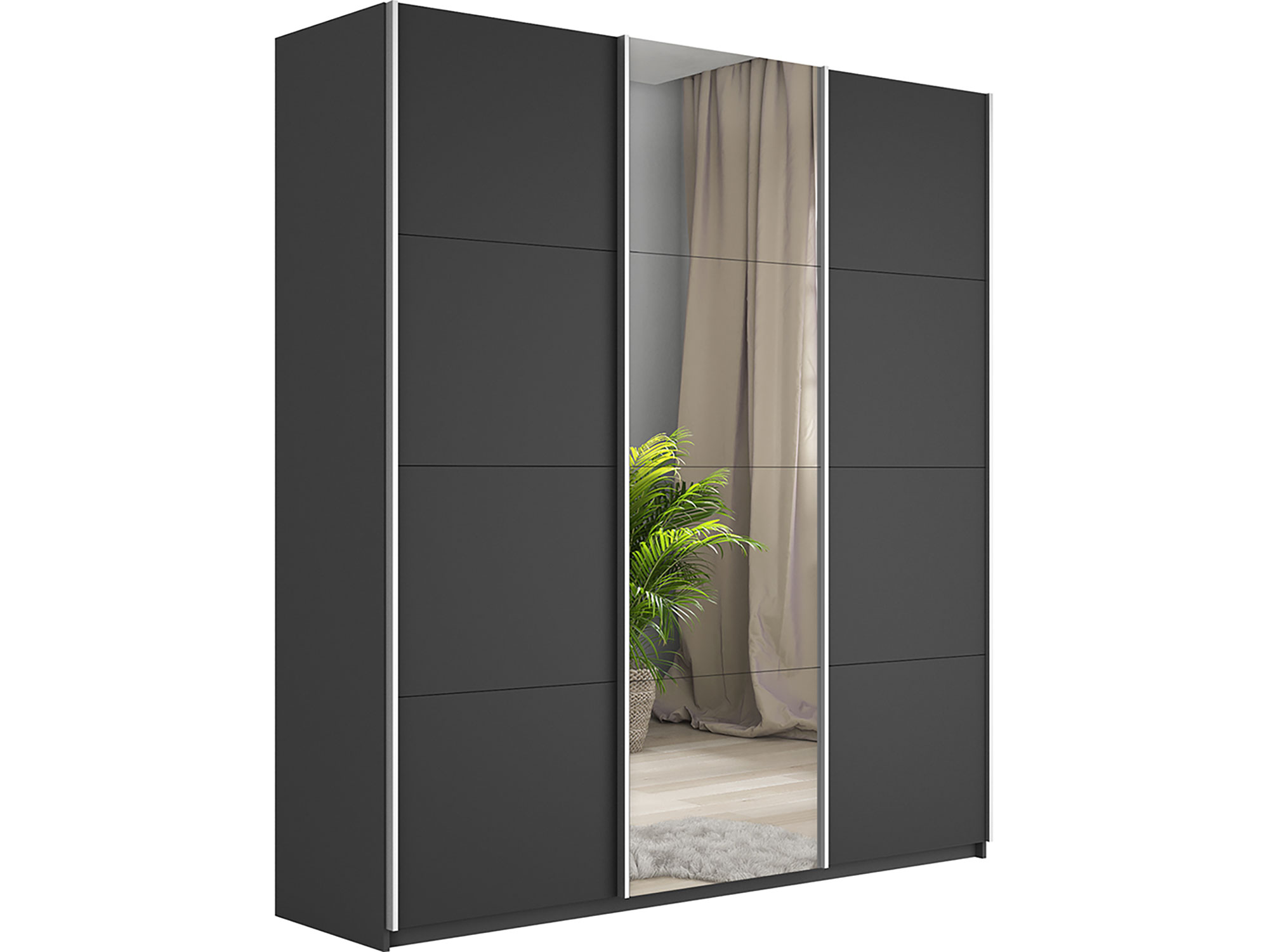 - Шкаф-купе Прайм 3-х дверный 1800 ДСП/зеркало/ДСП Серый Диамант