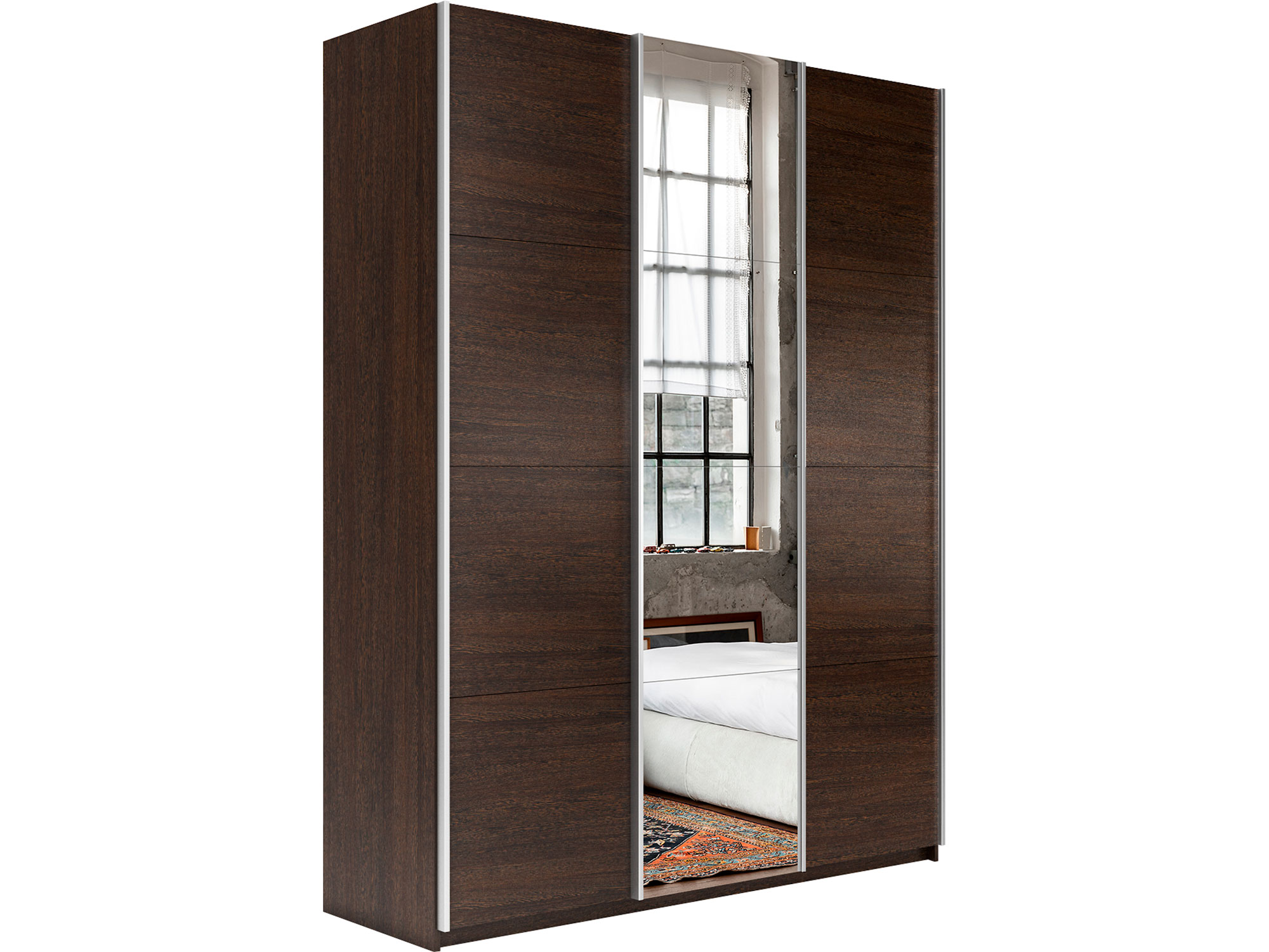 - Шкаф-купе Прайм 3-х дверный 1800 ДСП/зеркало/ДСП Венге